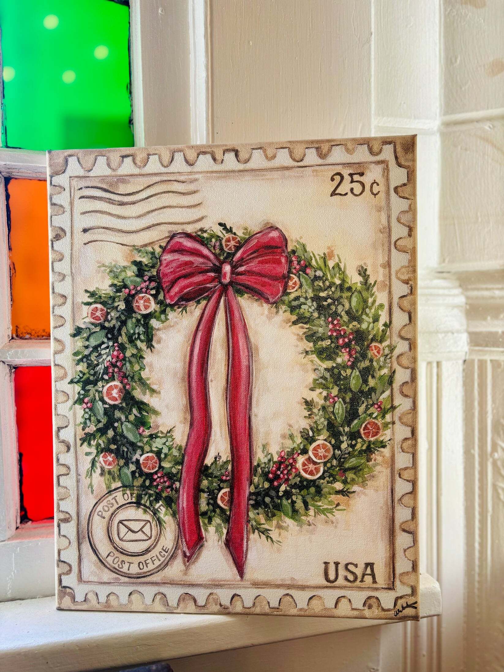 And now that we’re at Halloween, I have to mention her Christmas collection that has some beautiful pieces. Especially her wreath stamp canvas! I’m partial to Christmas stamp artwork (I have a mug) so it’s a favorite of mine.